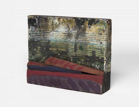 Peter Br�tzmann, Untitled (landscape), 2012, painted metal and shaped and painted wood, mounted on wood, 6 x 7 1/4 x 2 inches | |||
