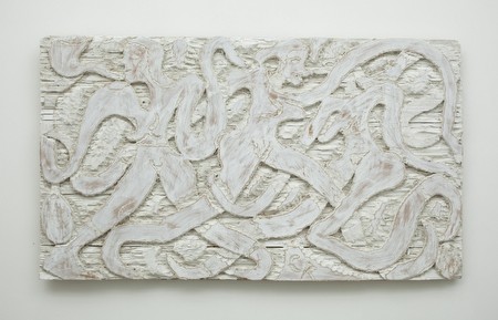 Charlie Roberts, Party Girls, 2014 Gesso on wood 80 x 139 cm | |||