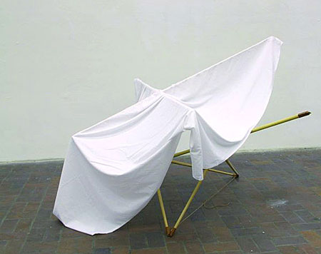 Johannes Wald Untitled I 2009 I Wood, leader, steel & cloth I 170 x 250 x 250 cm | |||