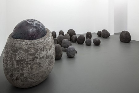 | Gereon Krebber: Somatös 14.04. – 26.05.2012 Galerie Christian Lethert is delighted to present its 3rd solo exhibition with Cologne based sculptor Gereon Krebber (*1973). Somatös is a word formation that mixes the idea of the somatic (physiological) and comatose. This state of uncertainty is the basic idea of the exhibition: inscrutable material, form, surface and appearance. For the Greek natural philosophers, similar to the hylozoists of the 17th century, life was a quality of matter itself. The world is soaked with life and obviously dead appearing things can be alive. Immanuel Kant judged: „The hylozoism inspirits everything, the materialism however kills everything.” Krebber talks about his sculptures as the „un-dead“ that seem to get out of control make us look like the sorcerer’s apprentice. In the first gallery room Krebber presents two works from the series Polycurls. These works, made of polyurethane (spray foam) and colored spray paint, are finally coated with epoxy casting resin: “With a gun I spray foam into thin, curling and winding threads that lay on top and next to each other. The view gets lost in a porous swarm that gives the impression of a freely winding and frizzing mass.” Krebber sprays his sculptures into shutter moulds that build solid blocks and bodies. Some parts he completes and shapes free hand by piling strands and threads of polyurethane foam which hang down straggly, agglomerate and break out of its forms. The monochrome chatoyant colored bodies appear alive and organic but stay abstract and unfamiliar. The works are coated with dropping layers of epoxy resin that enclose the sculpture like clammy slime. Captcha is a dark and blue-green gleaming crater. A wormy mass flows out of its ring mould that opens on one side. The flat block Payback tilts to one side and has a beige-brown-fleshly color. The sculptures show a precarious moment of loss of control, tilting and overflow. Gereon Krebber’s recent sculptures reside in the realm between fascination and disgust, between creature and object, animation and concretion, slapstick and threat. The same with the work in the second room of the gallery: a multi-part floor work of cellulose and concrete. Egg-like, organic forms build a strange breeding place resembling the hatchery in the space shuttle of the movie Alien. “The objects seem to lurk beneath the surface: There is still something strange, creepy and indescribable in the omitted empty spaces that lets it pound.” (Viola Weigel) We are happy to participate in this year’s Art Cologne from 18 – 22 April again. Furthermore we will exhibit at the first NADA NYC from 4 – 7 May. Gereon Krebber: Somatös 14.04. – 26.05.2012 Mit Somatös zeigt die Galerie Christian Lethert die dritte Einzelausstellung des Kölner Bildhauers Gereon Krebber (*1973). Somatös ist eine Wortbildung, die das Somatische, das Körperliche heraus streicht und dem Begriff komatös lautlich sehr nah liegt. In genau diesem Schwebezustand zwischen tot und lebendig scheint sich Gereon Krebbers Ausstellung einzurichten: Material, verrätselt in Form und Oberfläche und zwischen Körper und Erscheinung. Für die griechischen Naturphilosophen, ähnlich wie bei den Hylozoisten des 17. Jahrhunderts, war Leben eine Eigenschaft der Materie selbst: Die Welt ist vom Leben durchdrungen, dabei können auch offensichtlich unbelebt erscheinende Dinge belebt sein. Immanuel Kant urteilte: „Der Hylozoismus belebt alles, der Materialismus dagegen, wenn er genau erwogen wird, tötet alles." Krebber spricht von seinen Skulpturen als „Untote“. Sie machen uns zu Zauberlehrlingen und drohen, aus dem Ruder zu laufen. Im vorderen Raum der Galerie zeigt Gereon Krebber zwei Arbeiten aus der Serie Polycurls. Die Arbeiten aus Polyurethan (Bauschaum) werden mit Sprühfarbe koloriert und anschließend mit Epoxidharz übergossen. „Ich spritze den Bauschaum mit einer Pistole in dünnen Fäden, die sich gekringelt über- und nebeneinander legen. Der Blick verliert sich in einem porösen Wimmeln; es entsteht der Eindruck einer Masse, in der es sich frei windet und kräuselt.“ Krebber sprüht seine Skulpturen in Schalformen, wodurch kompakte Blöcke und Körper entstehen. Einige Partien ergänzt und modelliert er frei, indem künstliche Stränge übereinander gelegt und angehäuft werden. Diese hängen strähnig herunter, ballen sich und brechen aus den eingefassten Formen aus. Koloriert in monochrom changierenden Farben, wirkt der Körper organisch-lebendig, bleibt ausdrücklich abstrakt und fremdartig. Überzogen sind die Plastiken mit tropfenden Schichten Epoxidharz, der die Skulptur hochglänzend einschließt und wie feuchter Schleim wirken lässt, unter dem es weiter quillt. Captcha ist ein dunkler Krater, der blaugrün schillert. Seine Ringfassung öffnet sich und lässt eine gehäufte Masse herausfließen. Payback ist ein leicht gekippter, aufrecht stehender flacher Block, der beige-braun-fleischig koloriert ist. Die Skulpturen zeigen einen prekären Moment von Kontrollverlust, von Kippeln, Platzen und Überlaufen. Ihr Wimmeln und Ausbrechen hintergeht ihre klaren Umrisse und sprengt ihre architektonische Fassung. Krebbers neue Skulpturen arbeiten in einem Spannungsfeld zwischen Faszination und Abscheu, wischen Wesen und Objekt, Animation und Konkretion, Slapstick und Bedrohung. So auch die Arbeiten im zweiten Raum: Dort befindet sich eine mehrteilige Bodenarbeit aus Zellstoffbeton. Eierartige, organische Formen ergeben eine fremdartige Brutstätte, wie aus dem Raumschiff des Films Alien. Die Objekte scheinen zu lauern: "In den freigelegten Leerräumen steckt noch etwas Anderes, Unheimliches, jedenfalls Unbeschreibliches, das es noch weiter pochen lässt." (Viola Weigel). Wir freuen uns, auch in diesem Jahr wieder vom 18. – 22. April auf der Art Cologne vertreten zu sein. Außerdem nehmen wir vom 4. – 7. Mai auf der ersten NADA NYC teil. | ||||