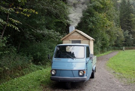 Roman Signer, Piaggio mit Haus, 2012 colour photograph 40 x 40 cm | |||