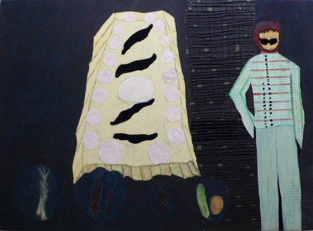 | Thea Gvetadze Shavi Shotebi 23. März 2012 - 28. April 2012 Thea Gvetadzes Gemälde bergen Geheimnisvolles. Ihre Bilder formen sich meist aus einer Welt der Mythen und Tagträume. Georgische Märchen, phantasievolle Wesen und rätselhafte Szenarien bestimmen die Poesie dieser Bilder. Thea Gvetadze (1971) studierte von 1988-1993 an der Art Academy in Tiflis (Georgien), von 1993-1994 an der Gerrit Rietveld Academy in Amsterdam und bis 2001 an der Kunstakademie Düsseldorf. Ihre Gemälde waren in zahlreichen Ausstellungen im In-und Ausland zu sehen, u.a. im georgischen Pavillon auf der Biennale von Venedig 2003, im Museum Kunstpalast in Düsseldorf 2005 sowie in der Kunsthalle Zürich 2008. Über die neue Werkgruppe, die Thea Gvetadze in ihrer ersten Einzelausstellung in der Galerie Rupert Pfab zeigt, schreibt Keti Chukhrov: Black Bread with Grace The show of Thea Gvetadze bears the title “Shavi Shotebi” which in Georgian means black bread, - “shotebi” (in plural), being a traditional sort of bread. The Shoti bread is the symbol of abundance and divine benevolence. But at the same time it marks the lifestyle oriented towards epicurean complacency, feasting, prosperity and peace – the features which happen to be the embodiment of quotidian life. Meanwhile the loaves of bread in Gvetadze’s painting “Shavi Shotebi” are black as if they were transformed into the uneatable substance or objects, that no more have to do with the everyday demands. In Russian avanguard the black (e.g. the black in the suprematist paintings) had the same function as the golden in the Byzantine orthodox iconography and was considered to be the non-color standing for the eternal, the perpetual. But in most of Gvetadze’s paintings it is not the background that becomes black as was the case with the avanguard, - where cosmology turned into total background devouring the figurativeness of reality; but it is the objects or bodies that are blackened to acquire the purport of the eidetic objects. This stance is not just about dividing the world into the material and the metaphysical, the empirical and the sublime or the spiritual, but rather about taking the matter, the material substance, the thing, the real in all its associative poetic dimension. On the other hand, the notions or meanings in their own turn are never detached in Gvetadze’s painting from matter, the touchable substance, the movement, the mood or the way of doing. In the piece called “Mamas” - the short poem of an extraordinary Georgian poet Anna Kalandadze - the letters and words are clad out of real flower petals and painted over, so that each word contains the blooming matter in the literal sense. But at the same time the blooming force of a flower and a plant becomes the allegory for the poetic force of language. The poem is a dialogue which translates as follows: “- Tell me ivy who went along the river Ksani. – I don’t know, was thinking about clouds and haven’t heard of anything. – Actually, I just asked by the way, not that I meant to talk at all”. This simple and naïve poem contains the dimension of the universal, the general which the painting transmits despite its unmediated modesty. Poetic allegories permeate the paintings of Gvetadze. In the piece called “If it takes forever I will wait for you” the flowers held by an old lady despite their fading and inability to sustain stand for the faithfulness and devotion. This painting as a whole implies various facets of life – its sustenance and volition in the central figure, its consuming vitality in the backstage figure holding out the Georgian dish khachapuri and the reverent resignation in the name of the eternal in the figure of the lady. In the “When I was young” the background is covered by an abstract imprint also clad out of flower petals and reminds of some corporeal substance which in the end can be considered as the allegory for the feminine, or as the dynamic force of anything that is alive. As it is known allegory was part and parcel of the late medieval and early Renaissance painting and the allegorical object on it looked a little absurd, paradoxical, naïve, but also such allegorical object was brought forth on the foreground to stand for the impossibility of the divine and was often put into the plastic position of reverent, mannered attitude, - the hieroglyph of longing for the impossible, permeating the picture with grace. In each painting by Gvetadze one finds such an allegorical object, gesture or movement from which grace, reverence and gratitude emanate. | ||||