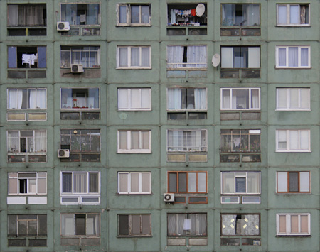 | Public space - regarded as a multilayered and shared space - is the main issue of the group exhibition FOR A HAPPIER TOMORROW. Invited by Galleri Tom Christoffersen artist Alexandra Croitoru presents a well-researched selection of photography and video from Central-Eastern Europe. It sounds activistic - and maybe it is. The works shown reflect the relations set up by artists between themselves and the public sphere especially by performing interventions (be it real or virtual ones) in the public space. The presented artists use their skills and knowledge to challenge reality or to create an alternative one as they show a non-defeatist, critical but at the same time ironical and playful attitude in relation to their social surroundings. Although concerned with the public sphere; either discussed through or performed in urbanity as context, FOR A HAPPIER TOMORROW is not an attempt to address a geo-political East-West duality. Neither is it an attempt to reflect whether there is a common denominator for the Central-Eastern European lens based media apart from the geographical one. As the diverse selection of works show, it is the particular artists approach, which intrigues: ANCA BENERA and KAMEN STOYANOV refer to the changes and the political antagonisms, that have affected the identity of public monuments, ADELA DEMETJA reverses a given political situation by imagining an Albanian Embassy in Germany where people would queue for a visa, DANIEL GONTZ criticises social regimentation by using the prefabs of a socialist block of flats to make a puzzle with infinite solutions while KRISTINA LENARD and PETAR MIRKOVIC play with the border between reality and fiction, between illusion and actuality. In his images of modern atomic shelters IVAN PETROVIC discuss questions of safety, phobias and fear, MAREK KVETAN points at different social dysfunctions by creating fictional spaces with the means of digital manipulation and ERIK SIKORA is ironically commenting on the strategies of the �social artist�. | ||||