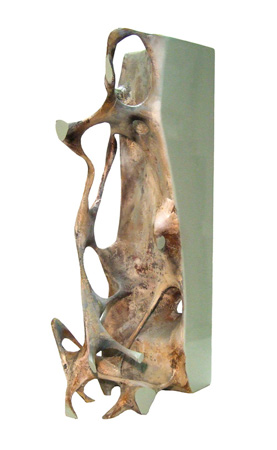 | Wolfgang Flad PLAY With a combination of shapes fashioned from raw wood and papier-mach� standing on immaculately lacquered, gleaming socles, the sculptures of Wolfgang Flad (1974 Reutlingen, Germany) are instantly compelling. The shapes comprise amorphous, illogical lines intended to represent living organisms. The artist places the finished pieces on crystal-shaped, perfectly varnished plinths. Even from a distance, the sculptures have a hyper-reality, reminiscent of oddly shaped human body parts. It is with an uneasy glance that we recognise ourselves in these peculiar creations to which Flad assigns the unknown names of stars (Hamal, Regulus or Castor). Flad�s work is realised against the background of the scientific and artistic Utopias of twentieth-century Modernism. There are echoes of Arp and Brancusi. And of sculptures from nineteen-fifties and sixties sci-fi movies or even sculptures that appeared in cartoons about modern art published in newspapers and magazines from that era. The works are the execution of the idea of a modern time in which science and hippy esotericism converge. The work of Wolfgang Flad is represented in various important private collections and also in public collections including that of the Kunsthaus in Zurich. This year, his work was featured in the exhibition LIFE? Biomorphic Forms in Sculpture in Kunsthaus Graz in Austria. Wolfgang Flad is represented by Galerie Reinhard Hauff in Stuttgart, among others. De sculpturen van Wolfgang Flad (1974 Reutlingen, Duitsland) vallen op door de combinatie van uit ruw hout en papier-mach� gemaakte vormen die staan op perfect gelakte, glanzende sokkels. De vormen bestaan uit amorfe onlogische lijnen die levend lijkende organismen moeten voorstellen. Hij plaatst ze uiteindelijk op kristalvormige, vlekkeloos gelakte sokkels. Zelfs van een afstand lijken de sculpturen echt, delen van vreemde menselijke lichaamsdelen. Op een onbehaaglijke manier herkennen we ons in deze vreemde groeisels die door Flad onbekende namen van sterren kregen (Hamal, Regulus of Castor). Flads werk komt tot stand tegen de achtergrond van de wetenschappelijke en artistieke Utopia�s van het modernisme uit het midden van de vorige eeuw. We zien Arp en ook Brancusi. Maar ook zien we sculpturen uit science-fiction films uit de jaren 50 en 60 of zelfs sculpturen die getekend werden in cartoons over moderne kunst in kranten en tijdschriften uit die tijd. De werken zijn de uitvoering van het idee van een moderne tijd waarin wetenschap samenvloeit met een hippieachtige esoterie. Het werk van Wolfgang Flad is vertegenwoordigd in verschillende belangrijke priv� verzamelingen, maar ook in openbare collecties zoals die van het Kunsthaus in Zurich. Dit jaar was zijn werk onderdeel van de tentoonstelling LIFE? Biomorphic Forms in Sculpture in Kunsthaus Graz in Oostenrijk. Zijn werk wordt ondermeer vertegenwoordigd door Galerie Reinhard Hauff in Stuttgart. Wolfgang Flad Geboren 1974 in Reutlingen Lebt und arbeitet in Berlin education 1995-2000 Fachhochschule Reutlingen, Textildesign 2000-2004 Akademie der Bildenden K�nste, Stuttgart, Freie Malerei solo exhibitions 2008 new sculptures, Aschenbach & Hofland Galleries, Amsterdam 2007 Anja Schw�rer & Wolfgang Flad, Galerie Reinhard Hauff, Stuttgart Surface, Galerie Clara-Maria Sels, D�sseldorf Encounter, Spielhaus-Morrison Galerie, Berlin 2005 Tangente, Ausstellungsraum, Marseille Eine Uhr, die sich bewegt ist schneller, St�dtische Galerie, Bad Waldsee group exhibitions 2008 Malcom Mclaren, Musical Paintings, ScheiblerMitte Gallery, Berlin Leben, Kunsthaus Graz Neuer�ffnung 3, Autocenter Berlin Loop, St�dtische Galerie Reutlingen Movement in, FlexibilityDolllinger Art Project, Tel Aviv, Israel Evolutionm, Max-Lang-Gallery, New York 2007 syster city, Berlin, Los Angeles Wasserzeichen, Shedhalle T�bingen 2006 Made in Germany, Galerie im Park, Burgdorf/Bern, Schweiz New abstract painting, Krammig&Pepper; contemporary, Berlin Dem Affen Zucker geben, Supermarkt, Karlsruhe TreSenWolf Autocenter, Ausstellungsraum, Berlin 2005 drei, zwei, eins, Columbus art Foundation, Ravensburg TreesXI-, Galerie, Gent, Belgien Dimension Raum, Columbus art Foundation, Ravensburg Argument, Kunstraum Zehntscheuer, M�nsingen Hoch drei, Kunstverein Esslingen, Villa Merkel 2004 Und ewig lockt die Malerei, Galerie Rainer Wehr, Stuttgart Chateau Marianne, Galerie Michael Sturm, Stuttgart F�rderungen 2005 F�rderprogramm Columbus art foundation Bibliographie Wolfgang Flad, Arbeiten 2003-2004, Reutlingen 2004 Angelika Arendt, Wolfgang Flad, Philip Loersch, �Hoch drei�, Kunstverein Esslingen 2005 Wolfgang Flad, Columbus art foundation, Ravensburg 2006 �Informel meets Minimal Art�, Portrait Wolfgang Flad, Kunstmagazin art info, Ausgabe November/Dezember 2007, Stuttgart | ||||