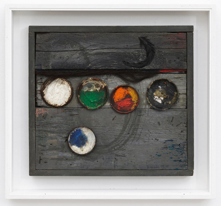 | Eug�ne Brands, Jens Wolf, DJ Simpson, Wolfgang Flad 1949 In de korte periode dat hij deel uitmaakte van de CoBrA groep in 1948 en 1949 maakte Eug�ne Brands een zestal assemblages. Vijf hiervan zijn in het bezit van het Stedelijk Museum te Amsterdam en vormen een belangrijk deel van de CoBrA Collectie van het museum. De zesde assemblage is slechts enkele keren voor het publiek te zien geweest onder andere in tentoonstellingen in het Cobra Museum te Amstelveen het Museum voor Moderne kunst te Schiedam en het Stedelijk Museum te Amsterdam. Aschenbach & Hofland Galleries is trots dit belangrijke werk te kunnen tonen exact 60 jaar nadat het werd gemaakt. De tentoonstelling bestaat verder uit twee andere assemblages van Brands uit de periode 1966 en nieuwe werken van de Duitse kunstenaars Jens Wolf en Wolfgang Flad en de Britse kunstenaar DJ Simpson. | ||||