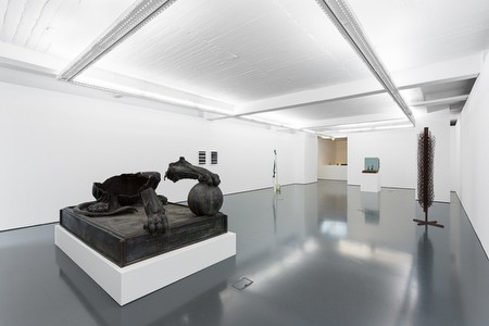 | ESSE ESTRANHO, UBÍQUO E IMPLACÁVEL SÍTIO A QUE CHAMAMOS MEMÓRIA this strange, ubiquitous and relentless place we call memory Andreas Slominski, Fernando Sánchez Castillo, Juan Uslé, Mark Manders, Miroslaw Balka and Yorgos Sapountzis Curated by Miguel von Hafe Pérez Jun 11 - Jul 31, 2015 I like to think about art as a declination that results from multiple forms and thoughts of the world in permanent tension. The elements that we manage to salvage from this parallel, necessary and speculative creation will culminate in a myriad of socially distinct uses, some of which are neglected in the march of time, while others are overvalued in the spiral of misunderstandings to which we are repeatedly subjected. Art is inevitably an exercise of memory. Memory that is materialised via individual experiences, interpretations of the world that are filtered by personal thoughts and fundamentally, a memory of the intrinsic history of its previous materialisations (even if dematerialized to the extreme). When one tries to elaborate a discourse articulating a series of works by means of a curatorial gesture, we must always think that the space which is thus carved out is always almost negligible in the web of all possible meanings of works which immediately encapsulate an inner complexity and are thus exposed to radiating contamination from their circumstantial peers. The goal of this exercise, which to a certain extent is authoritarian, in the unique time interval in which this coexistence is established, is to enable the viewer to grasp the inevitability of these forms, through an undirected reception, rather than by means of the hubbub that these words nonetheless inspire. Europeans, with their sense of superiority, unleashed two world wars in the 20th century and at the end of the century vacationed next to an unspeakable civil war. In the intervening years they rebuilt and destroyed, and made pacts with God and the Devil. Now, in a kind of revenge served cold, we have to face the persons who we previously exploited, invaded or simply ignored, without our previous arrogance. That doesn’t strike me as being unjust – but what scares me is the complete absence of historical perspective. Of our politicians. Of our elites. To find assertive alternatives before the unbridled capitalism that they created and unscrupulously continue to protect, without space for truly alternative ideas. And a nondescript mass of citizens who have been anaesthetised by the sensation of hyper-connectivity in which each of us establishes own narrative, as if it were extremely insightful and of utmost importance. But the common good was never perhaps so shaky and fragile. Because we also feed from our memories. And when our memories are fuelled by the iniquity of insignificant trivia, we ultimately overlook the more purposeful and healthily questioning foundations of civilisation. In this exhibition this debate resonates in the spaces that mediate the works. When we look at the paintings of Juan Uslé, we envision that which is vital in his work, in building a pictorial universe determined by an idiosyncratic cadence: the search for a material and physical silence, which is often crucial in order to enable him to follow the action of painting with the rhythm of his own body. A metaphor of closing ourselves off to the world in order to redeem a world that has been woven by this process of existential obliteration. As Uslé himself explains, the capacity of painting to create an effect of immediacy and duration thereby becomes one of the key puzzles of our time. In his case, this oxymoron is resolved in the structured tension between the disruptive organic nature that is invariably found in a minimal painting, of repeated and controlled gestures. A major part of Mark Manders’ work is characterised by the fixation of a universe of forms that inhabit the diffuse territory of individual memory, traversed by the unintelligibility of the complexity of a world in permanent hermeneutic disruption. As he himself points out, his mind is filled by a mixture of words, human gestures and objects that he likes to view as the entire possible lexicon of a universal history in which he is a time traveller. Indulging in a poetic action of reconfiguration of the world from elusive fragments extracted from this encyclopaedic magma, his work combines conceptual rigour with the surprise of archaic forms, timeless figurations and linguistic speculations. Landscape with false dictionaries, of 2014, combines, in the same material plane, the idea of enclosure and scope, i.e. the reduction of a language to a written document, while on the other hand, an opening, in this case towards a landscape that unfolds like a wave. As abstract as the concept of landscape, the concept of crystallization of a developing language into a physical object refers to this fundamental vector in this artist’s work - which involves seeking that which he defines as the ultimate essence of artistic creation: the possibility of experience things in their naked form. Unlike Manders, who traces the poetic performativity of the image in an objectual plane, Yorgos Sapountzis produces sculptures on the basis of elements that often arise from performances and public actions. Challenging the idea of the monument, he interacts with public statues, not so much in order to extract their specific meaning, but instead because he is interested by the manner in which their inscription in the public space unfolds in narratives of power, representation and symbolic mediation. By using a paraphernalia of more or less ephemeral materials, such as fabric or plaster, in the confrontation with bronze or marble monuments, Sapountzis introduces micro-stories of ephemeral experiences in this relationship with the timeless stability of the monument. As a direct memory of the performances, or as a result of processes of investigation and conceptual design of these performances, his sculpture