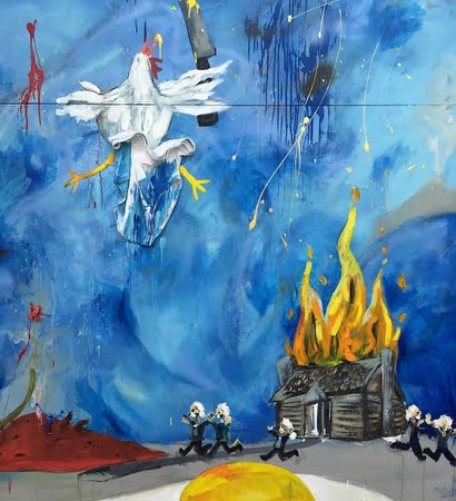 Garcia-Fenech's works are one-shot improvisations, painted directly on the canvas without preliminary sketches. His work takes inspiration from a wide variety of sources, including tribal art, Byzantine icons, outsider art, illuminated manuscripts, German Expressionism, hard-edge and colorfield abstraction, and '80s figurative painting. The results encompass a number of contradictions: a combination of grace and awkwardness, of realism and distortion, and of narcissism and embarrassment.